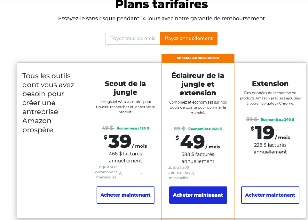 Jungle scout vous offre l’option du web App, l’extension Chrom ou des deux jumelé